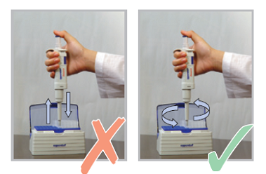 把移液器頂端插入槍頭(無論是散裝槍頭還是盒裝槍頭都一樣),在輕輕用力下壓的同時,左右微微轉(zhuǎn)動,上緊即可。