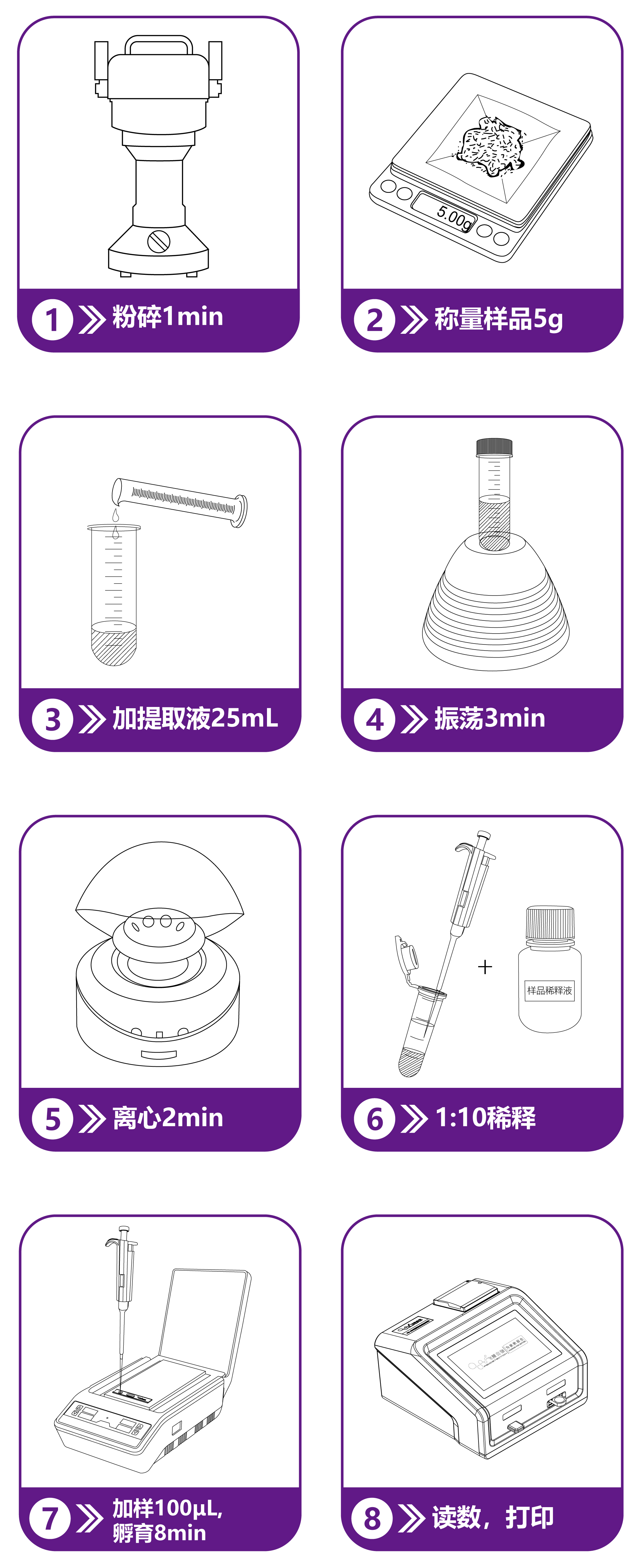 用漩渦振蕩器混勻3-5秒后,取100μL稀釋后的液體,加到檢測卡的加樣孔中;