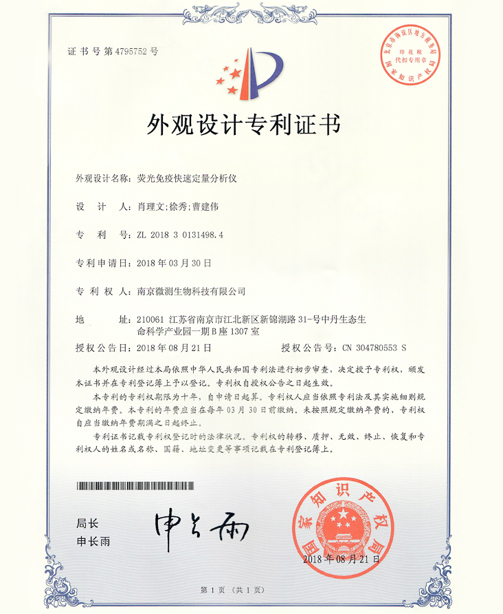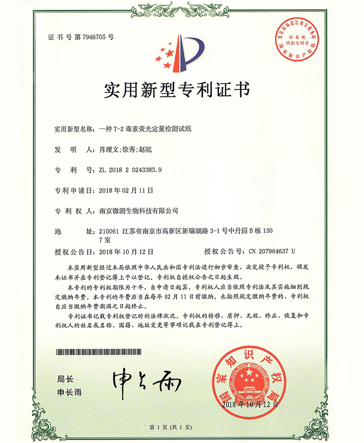 南京微測生物科技有限公司是一家致力于食品安全與動物疾病領(lǐng)域快速檢測技術(shù)和產(chǎn)品開發(fā)的國家級高新技術(shù)企業(yè)。自主開發(fā)的食品安全熒光定量FPOCT快速檢測技術(shù)平臺,具有靈敏度高、定量范圍寬、準(zhǔn)確度高、穩(wěn)定性強(qiáng)、操作快速簡便等優(yōu)點(diǎn),正逐步替代膠體金試紙條和酶免試劑盒等傳統(tǒng)快速檢測產(chǎn)品,引導(dǎo)國內(nèi)食品安全和動物疾病快速檢測從粗略定性到準(zhǔn)確定量的升級換代。公司非常重視知識產(chǎn)權(quán)的保護(hù),目前已申請專利、軟著等20余項(xiàng),承擔(dān)江蘇省創(chuàng)新基金科研項(xiàng)目一項(xiàng),榮獲“江蘇省民營科技企業(yè)”和“國家高新技術(shù)企業(yè)”稱號。