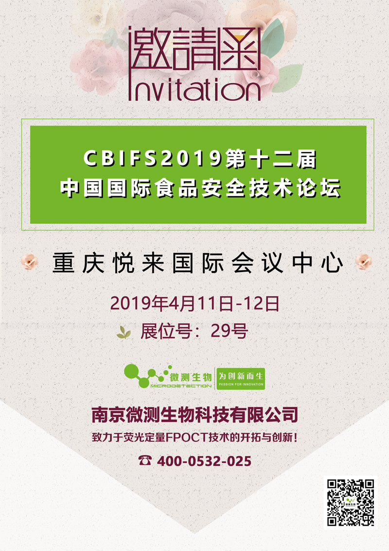 CBIFS2019第十二屆中國國際食品安全技術(shù)論壇”將于2019年4月11日-12日在重慶悅來國際會議中心舉辦。南京微測生物將攜真菌毒素+重金屬+農(nóng)藥殘留三合一熒光定量快速檢測系列產(chǎn)品參加本屆盛會,誠邀各位新老客戶蒞臨交流,我們將為您提供有關(guān)食品安全與動物疫病熒光定量快速檢測方面詳盡的技術(shù)咨詢、檢測演示及現(xiàn)場答疑解惑。南京微測展位號:29號,恭候您蒞臨交流。